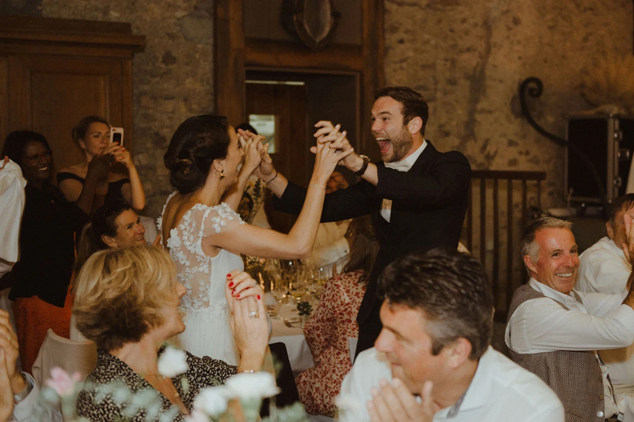 La soirée a été un autre chapitre mémorable, marqué par une série de surprises qui ont donné une magnifique ambiance pour les invités et les mariés. Entre projections de vidéos et animations soigneusement préparées, l’atmosphère était électrique, imprégnée d’un sentiment de partage et de fête. La découverte du gâteau, suivie de la première danse sous une voûte étoilée de feux de Bengale, a scellé cette journée d’une beauté exceptionnelle.